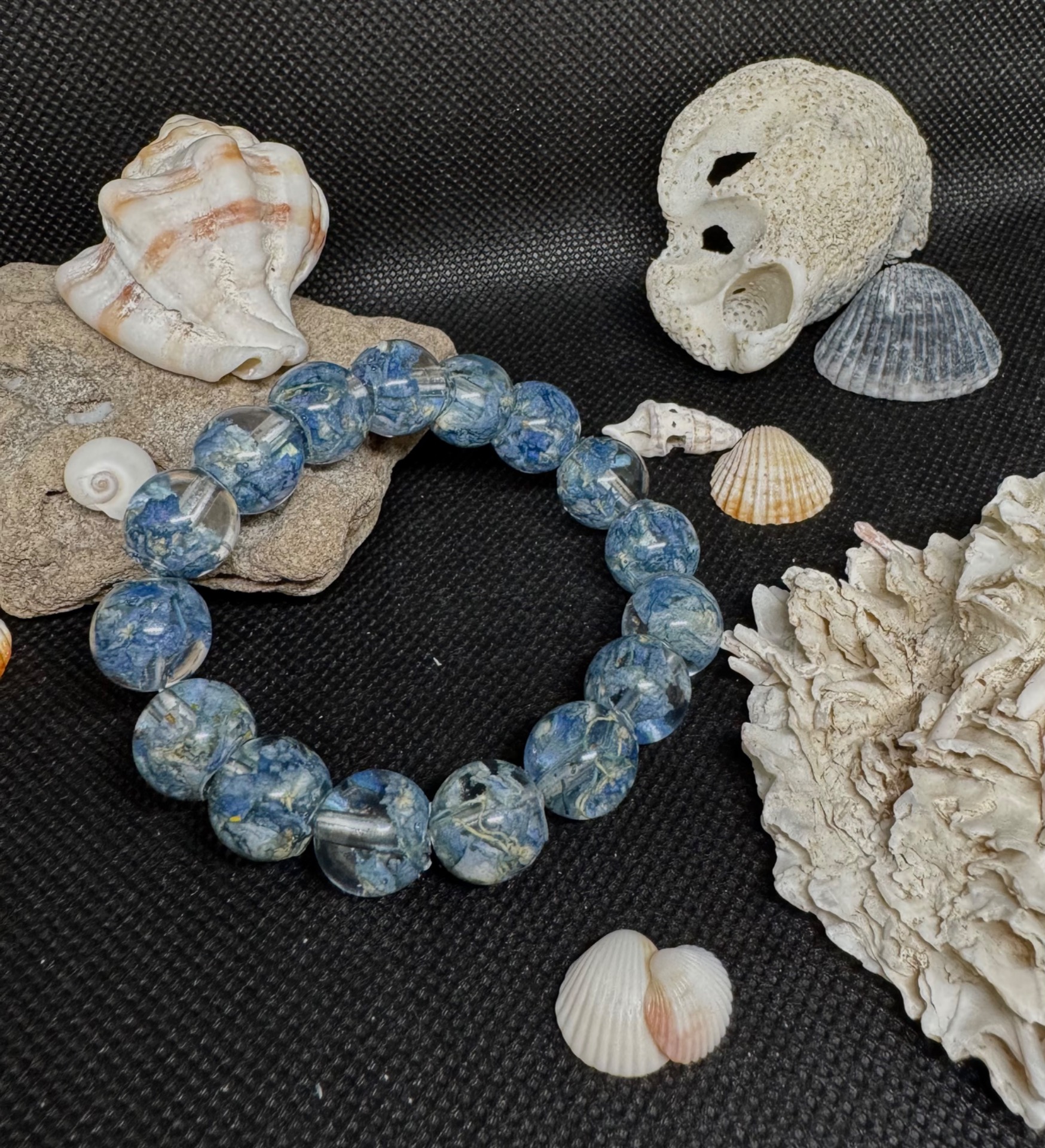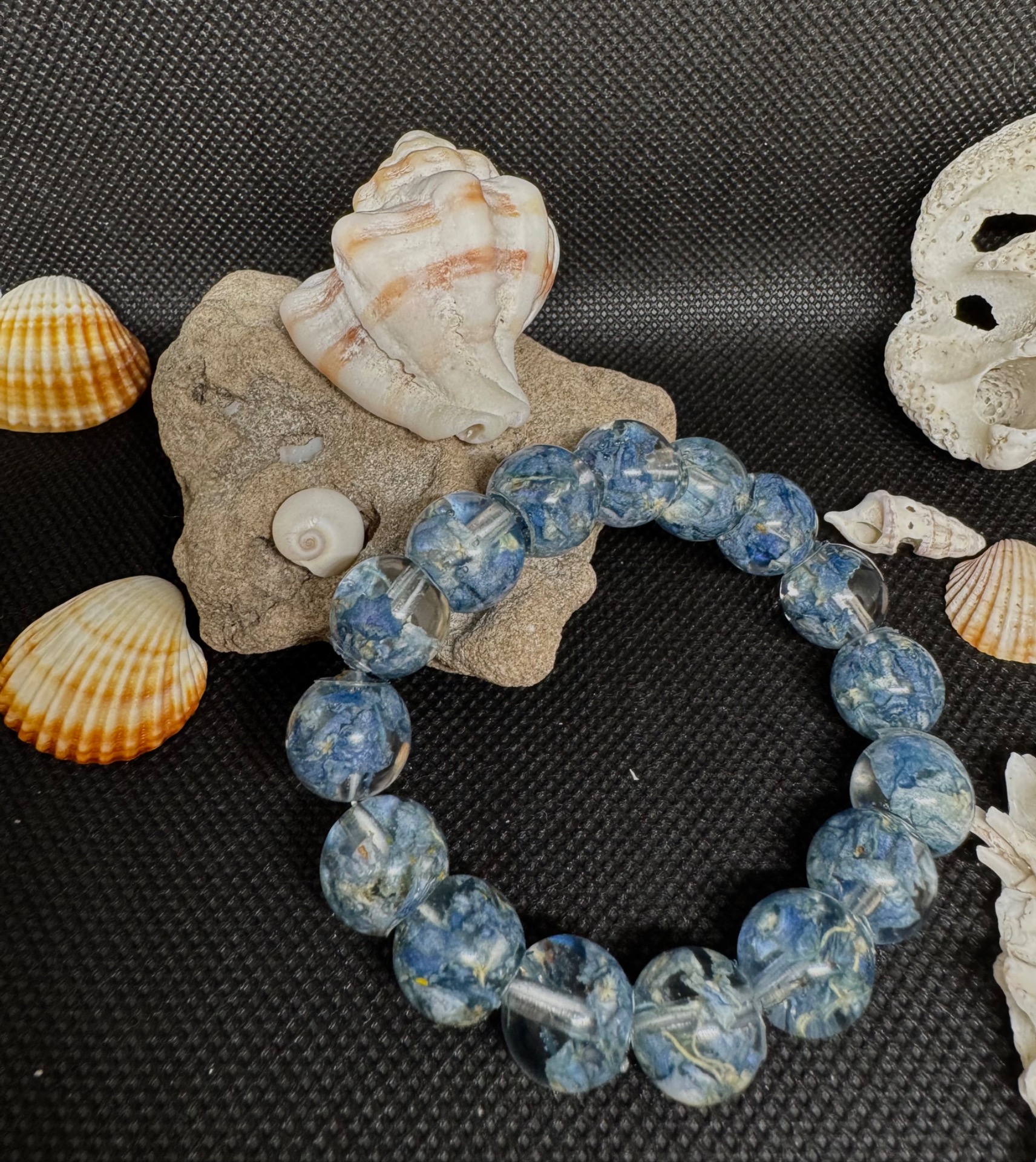 Jemný náramek s korálky se stane tvým každodenním talismanem. Elastická gumička zajistí pohodlné nošení na zápěstí. Průhledná epoxidová pryskyřice s třpytkami, květinami nebo jejich jedinečným mixem dodává každému kousku originální šarm. Díky tomu je každý kus originál a rozmístění výplně se může mírně lišit.