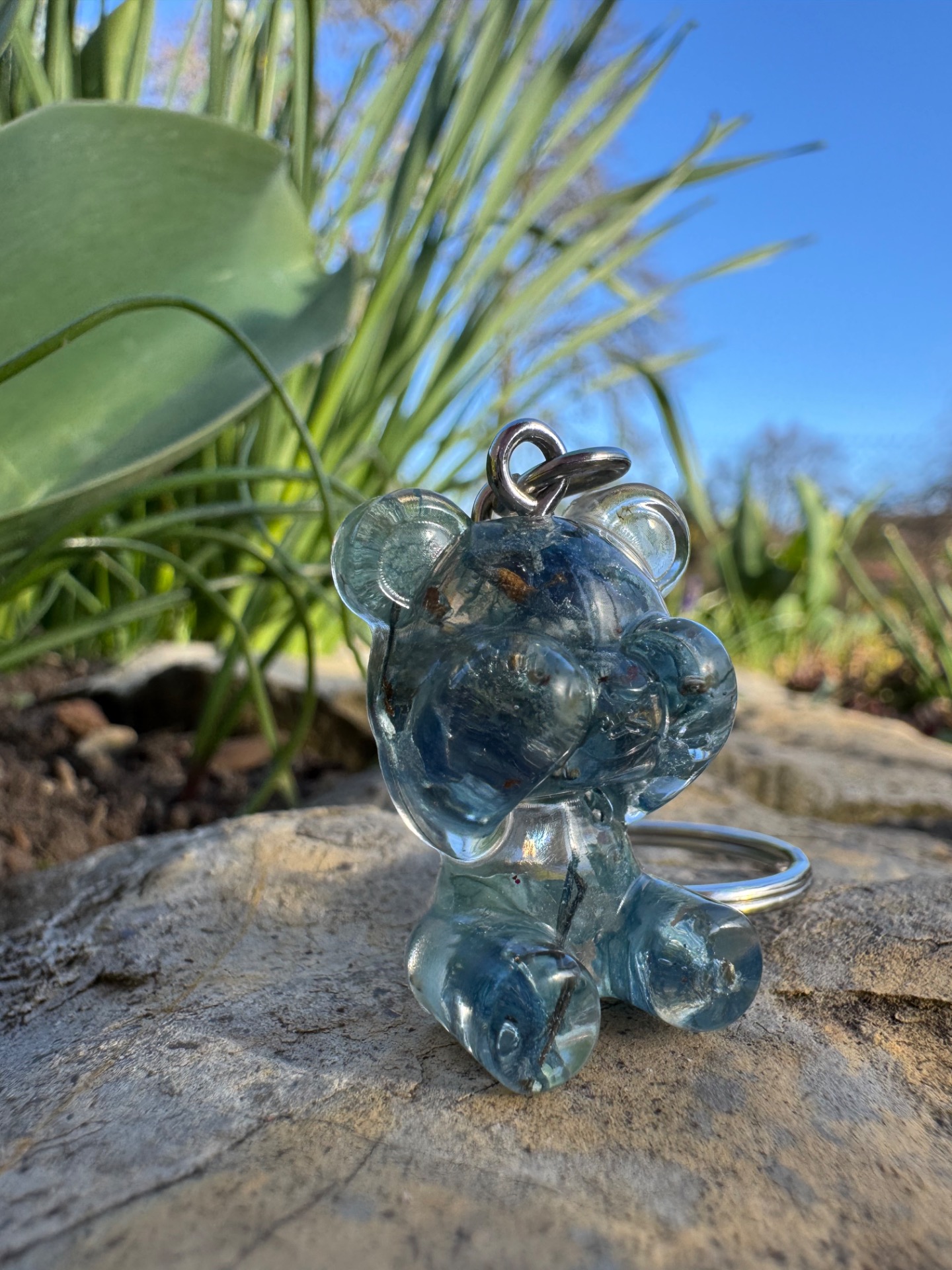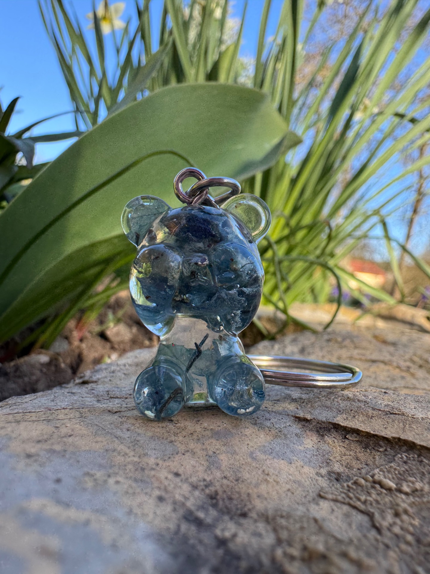 Roztomilý přívěsek ve tvaru medvídka okouzlí svou jemností a hravým vzhledem. Skvěle se hodí jako ozdoba na klíče, kabelku nebo batoh – dodá jim osobitý dotek a kousek roztomilosti, který nikdy neomrzí.Každý přívěsek je ručně vyráběný a uvnitř se ukrývá drobná dekorace – třpytky, sušené květy nebo jejich kombinace. Díky tomu je každý kus naprostý originál a může se mírně lišit odstínem či rozmístěním prvků.