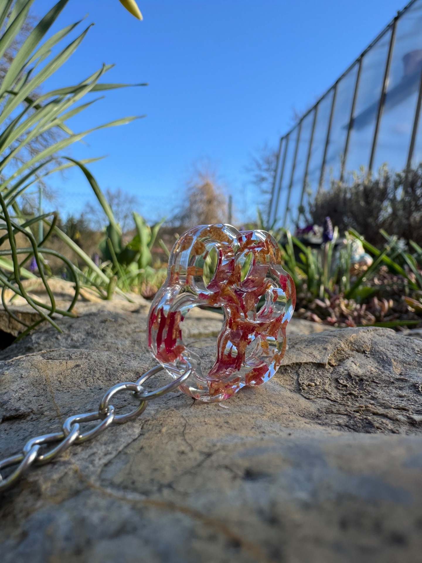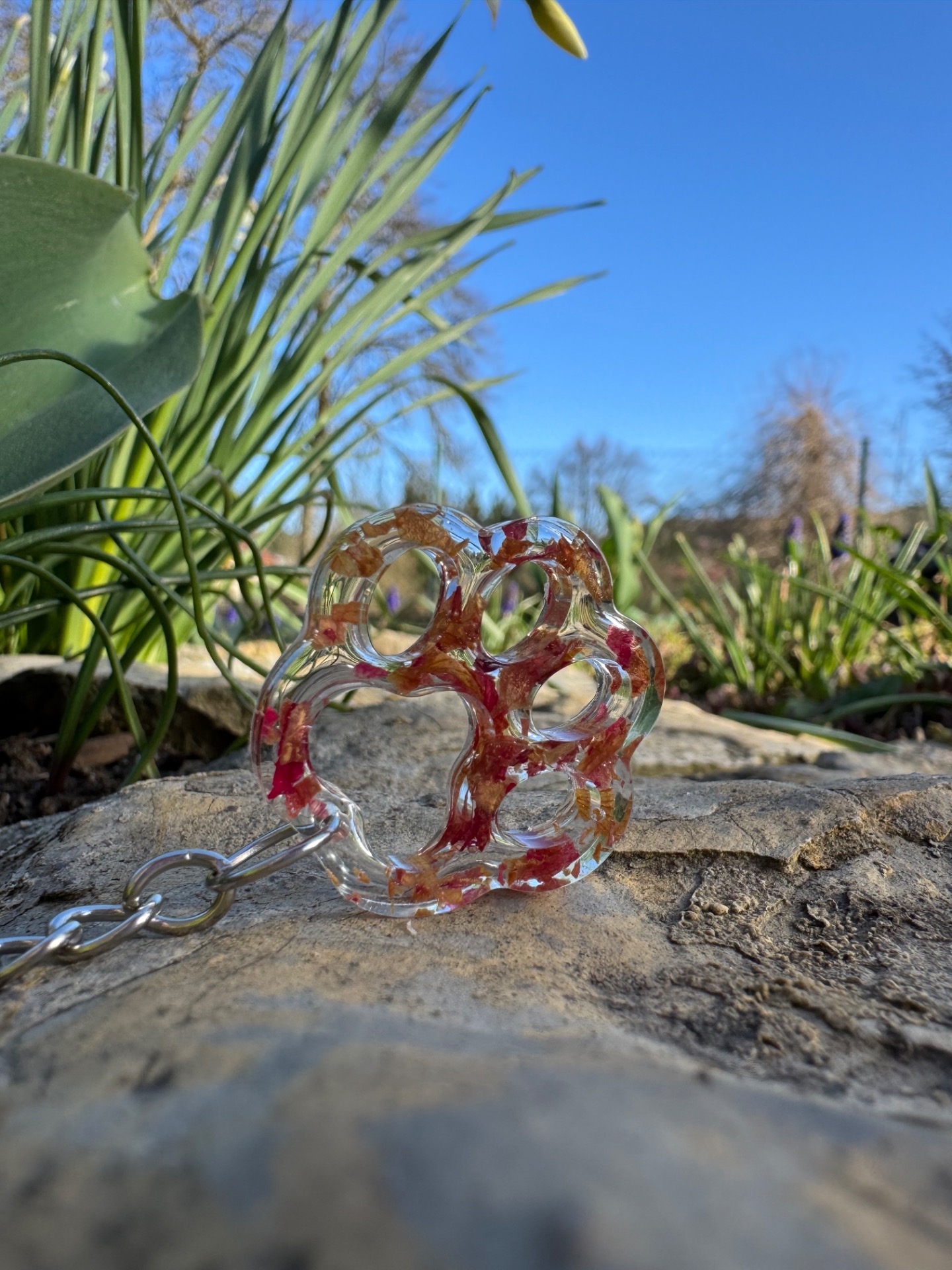 Upozornění: Přívěsek je dekorativní doplněk, není určen ke hraní. Uchovávejte mimo dosah malých dětí – obsahuje drobné části, které nejsou jedlé a mohly by představovat nebezpečí při vdechnutí nebo spolknutí. Chraňte před dlouhodobým působením vody, chemikálií a přímým slunečním zářením. Každý výrobek je originál. Fotografie jsou pouze ilustrační a skutečný vzhled produktu se může mírně lišit. Barva květiny zalité v pryskyřici se může časem změnit – jde o přirozený proces, který ovlivňuje pigmentaci rostlin a nelze jej zcela ovlivnit.
