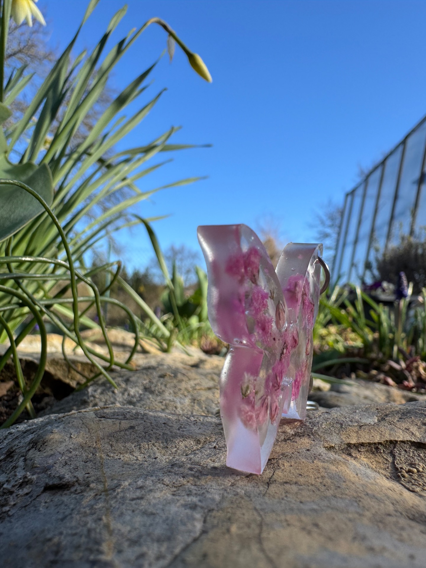 Upozornění: Přívěsek je dekorativní doplněk, není určen ke hraní. Uchovávejte mimo dosah malých dětí – obsahuje drobné části, které nejsou jedlé a mohly by představovat nebezpečí při vdechnutí nebo spolknutí. Chraňte před dlouhodobým působením vody, chemikálií a přímým slunečním zářením. Každý výrobek je originál. Fotografie jsou pouze ilustrační a skutečný vzhled produktu se může mírně lišit. Barva květiny zalité v pryskyřici se může časem změnit – jde o přirozený proces, který ovlivňuje pigmentaci rostlin a nelze jej zcela ovlivnit.