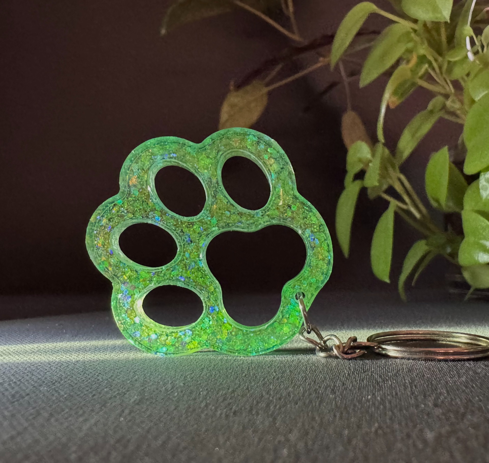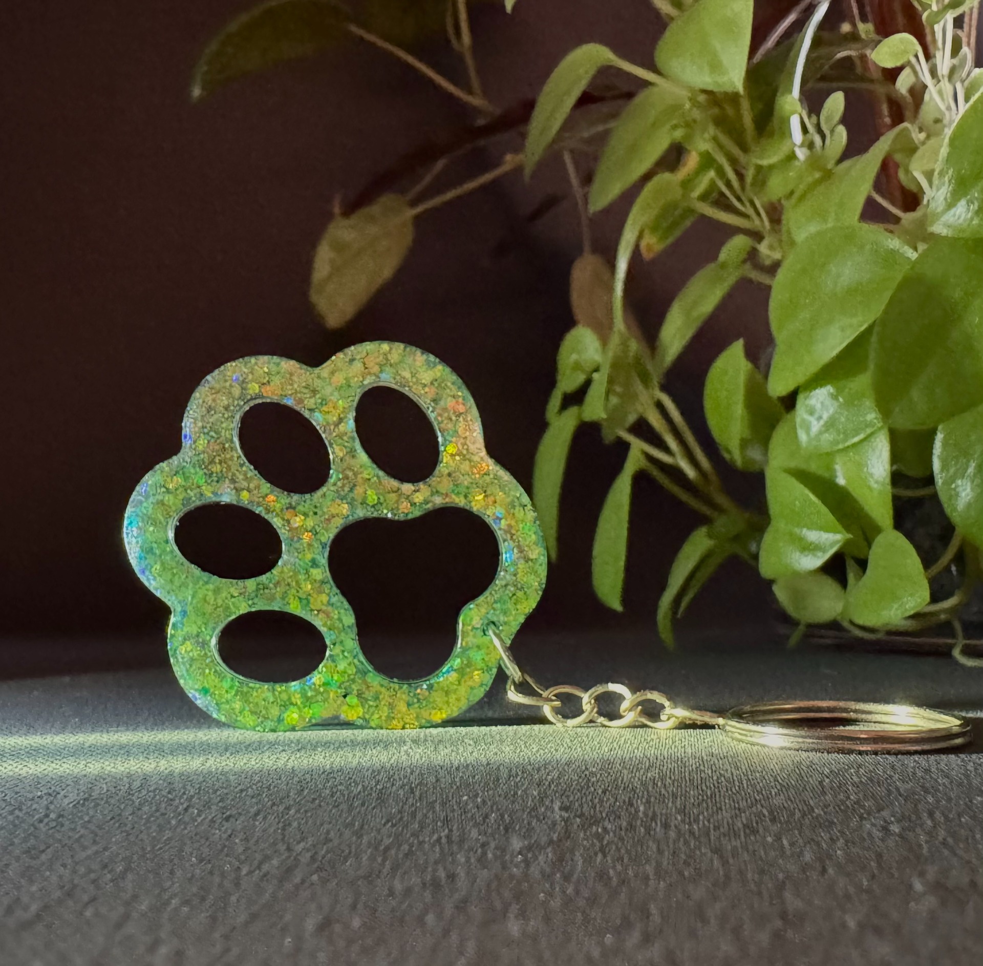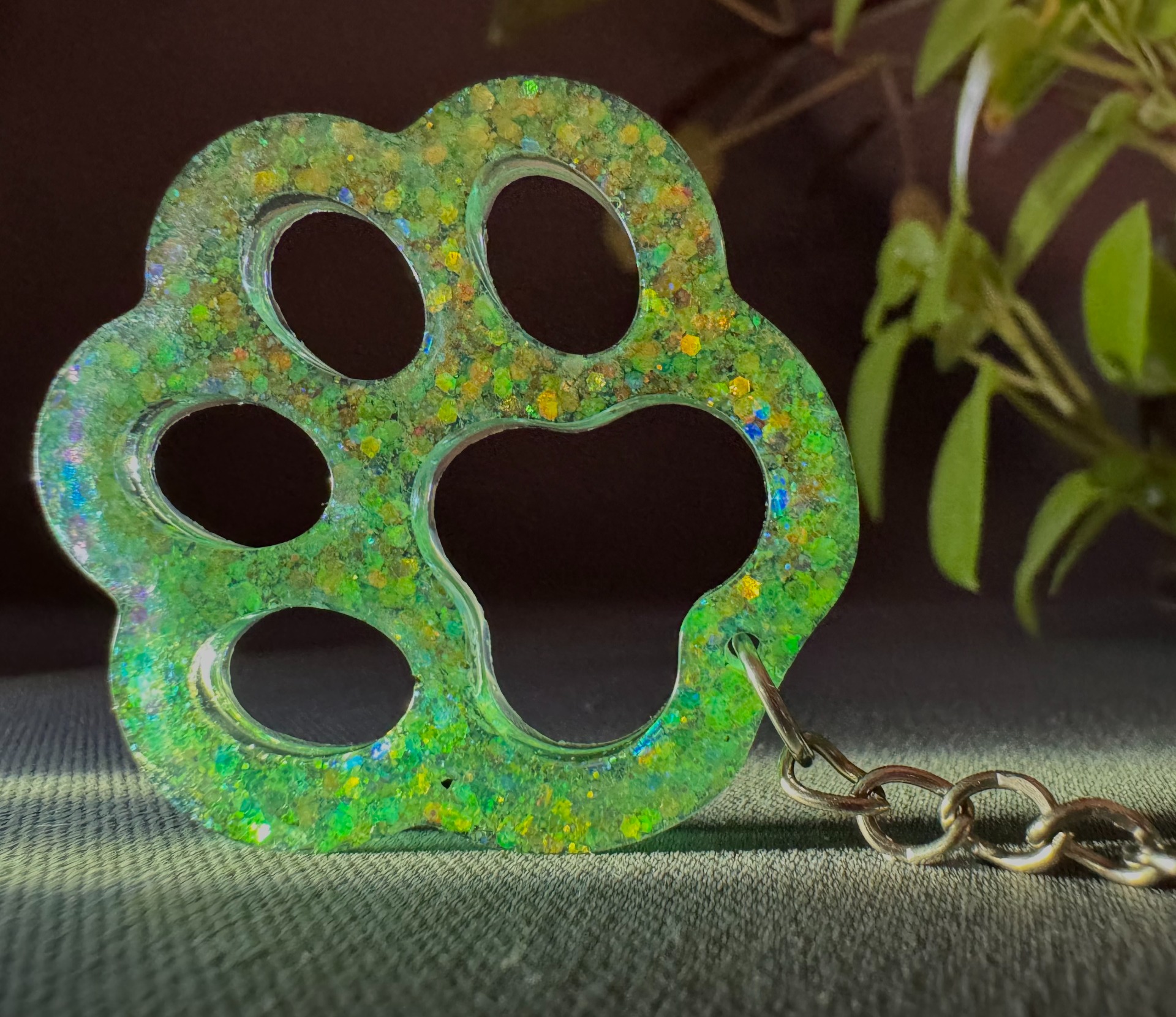 Jemný přívěsek pro milovníky zvířat. Psí packa skvěle ozdobí klíče, kabelku nebo batoh a dodá jim originální styl. Každý přívěsek je ručně vyráběný a může se mírně lišit odstínem či rozmístěním třpytek.