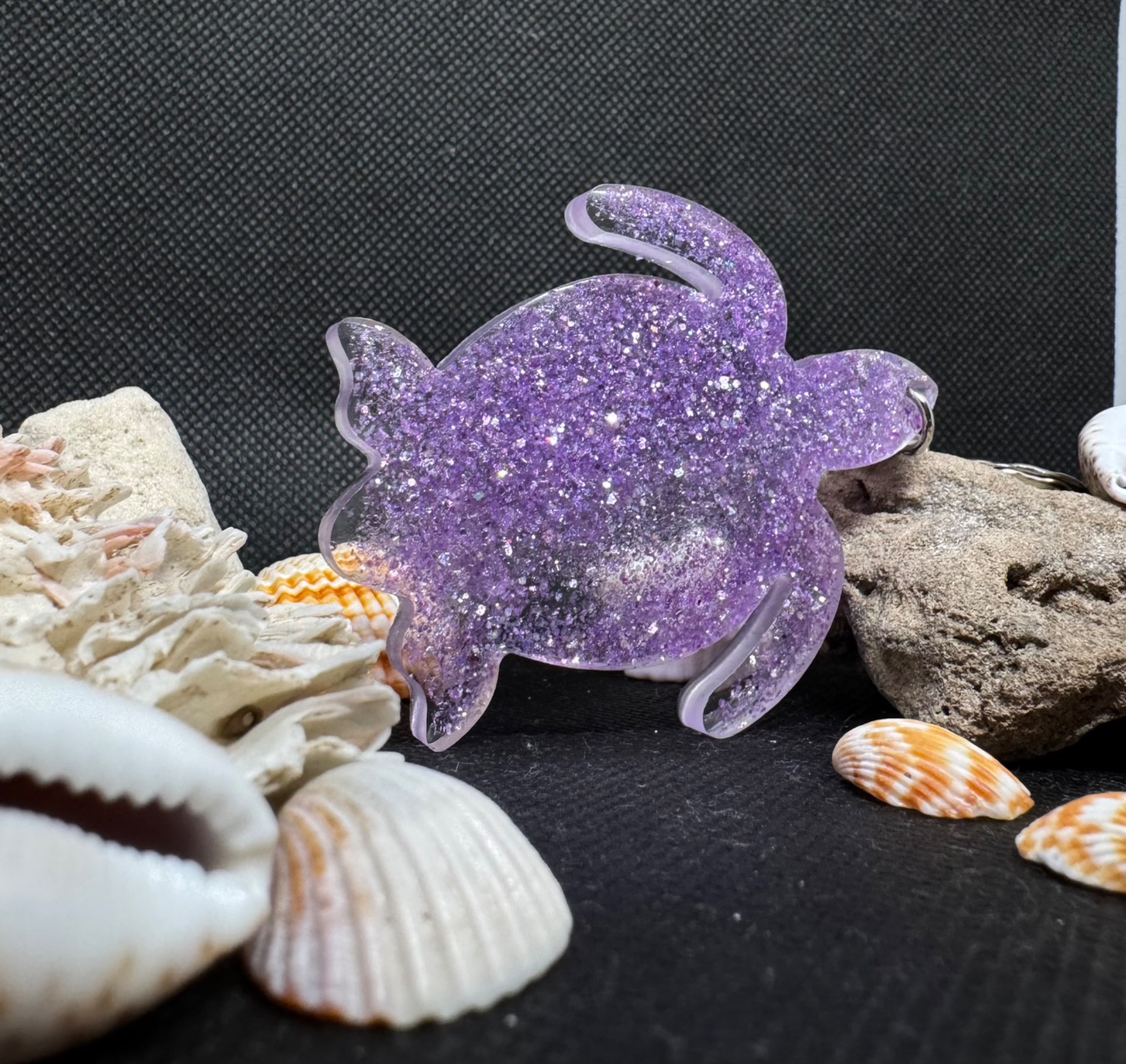 Materiál želvy: epoxidová pryskyřice s dekorativní výplní (třpytky, květiny
