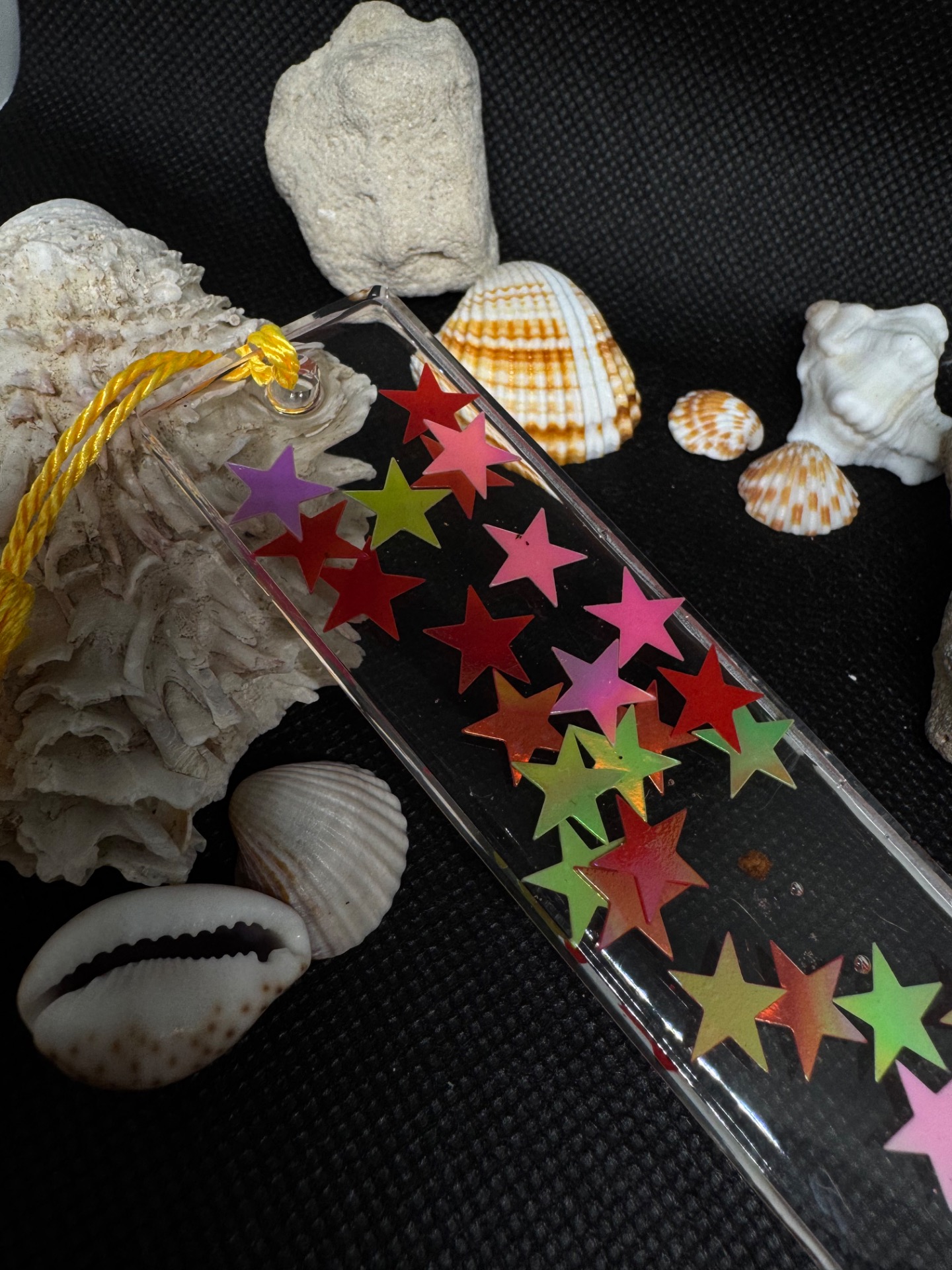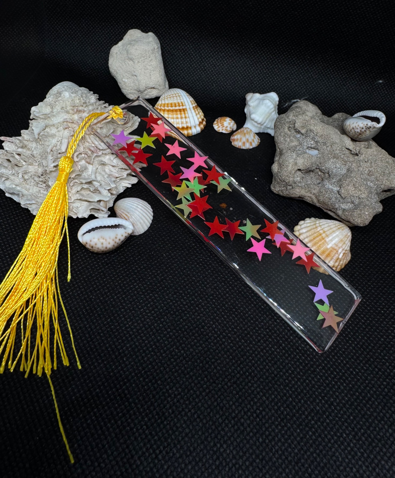 zaujme.Hranatá záložka z pryskyřice s čistým tvarem a výrazným obsahem. Plněná